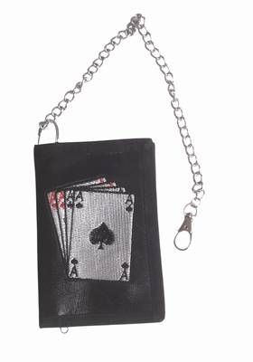 Portofel brodat cu 4 Asi, din panza, cu scai si lant pentru prindere la curea.